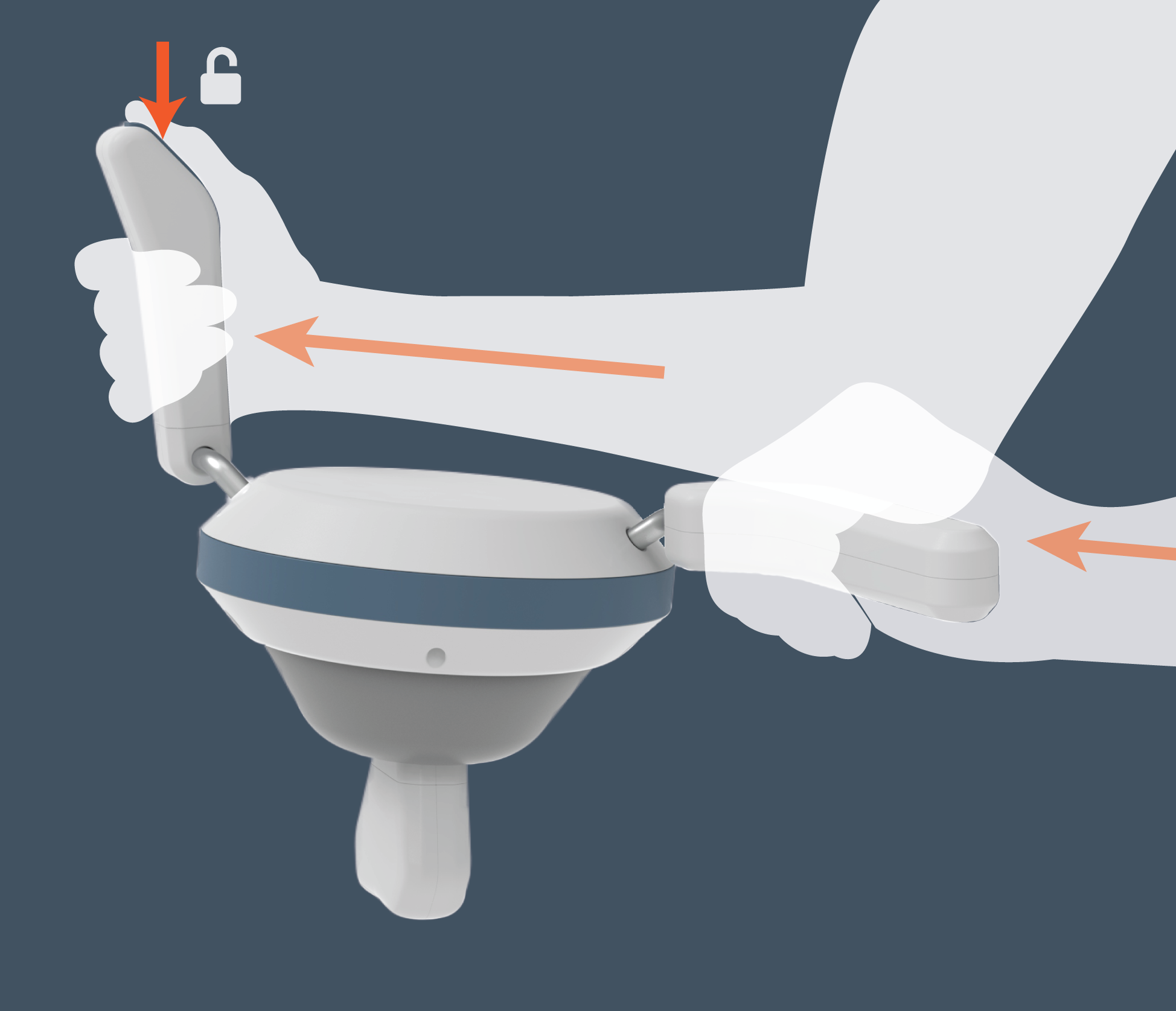 Patient site assistant adjusts, using the hinging handles to maintain neutral wrist position.