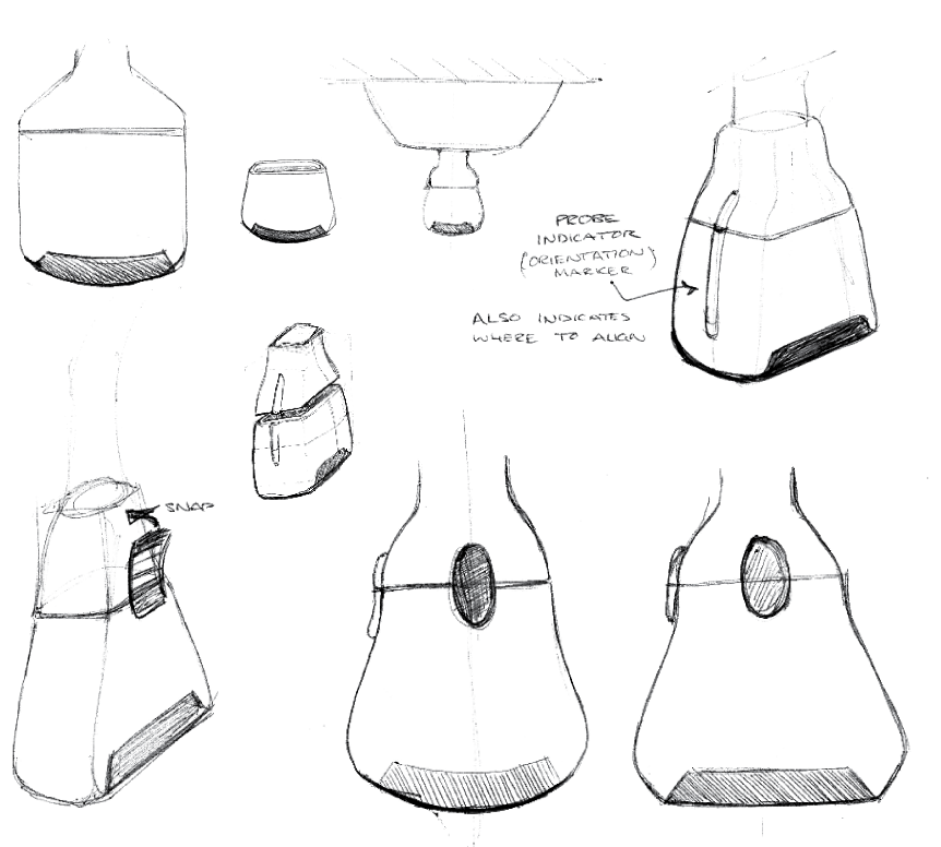 The animations demonstrate the exploration and how the handle configuration allowed the user to adjust the device placement with minimal effort from a neutral wrist posture–the handles and the base move so your wrists don’t have to.